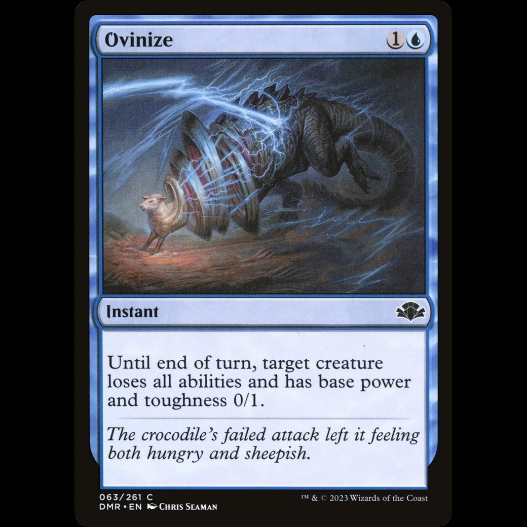 Until end of turn, target creature loses all abilities and has base power and toughness 0/1.