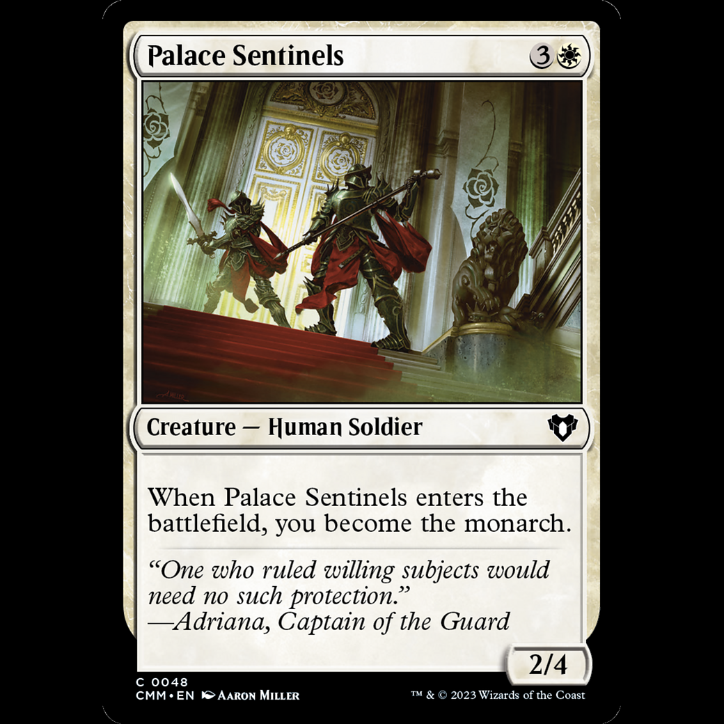 MTG Palace Sentinels Commander Masters cmm#48When Palace Sentinels enters, you become the monarch.