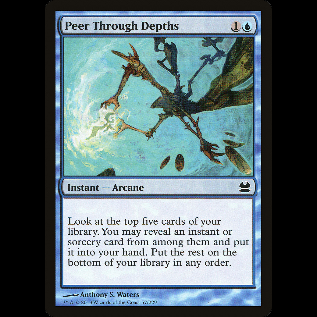Look at the top five cards of your library. You may reveal an instant or sorcery card from among them and put it into your hand. Put the rest on the bottom of your library in any order.