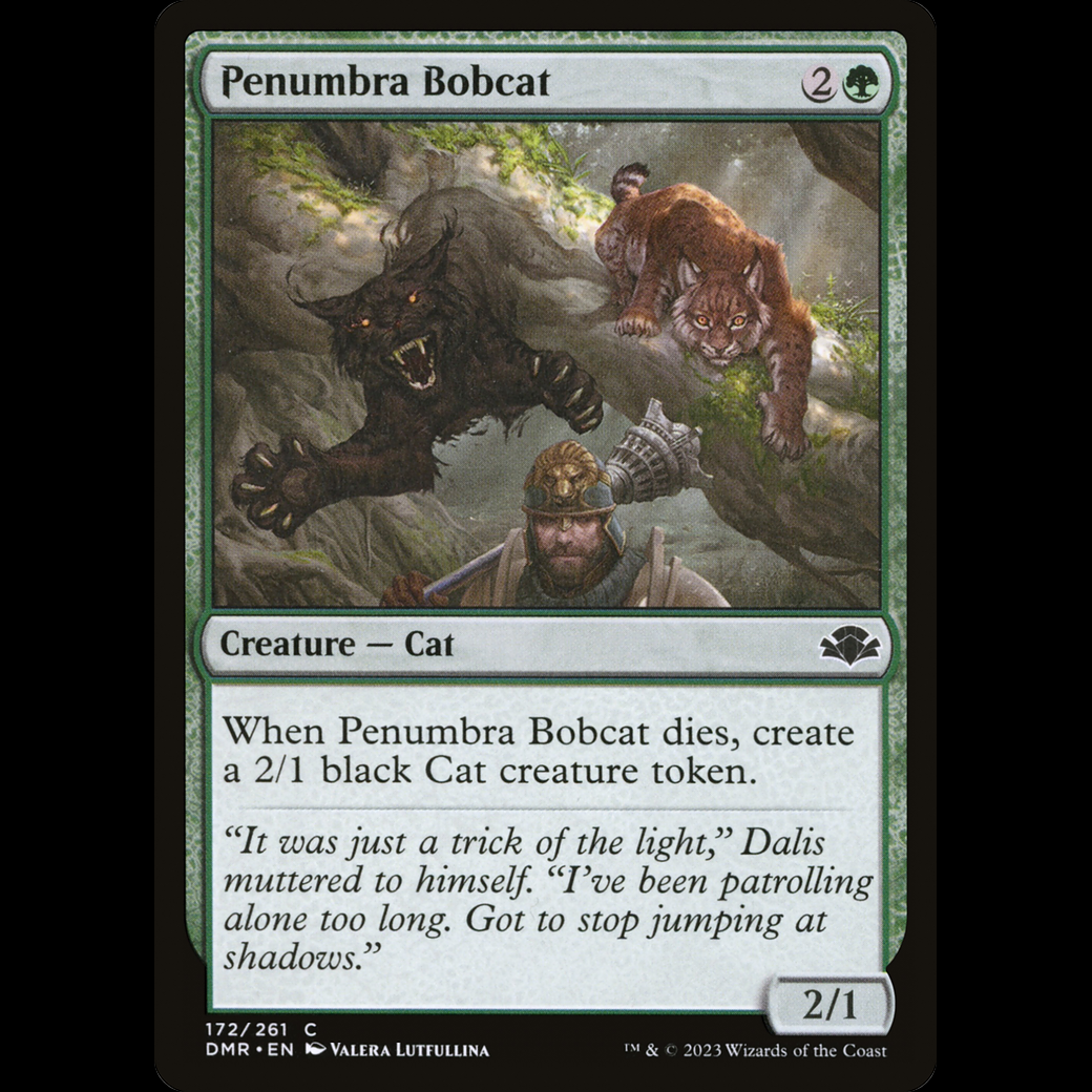 When Penumbra Bobcat dies, create a 2/1 black Cat creature token.