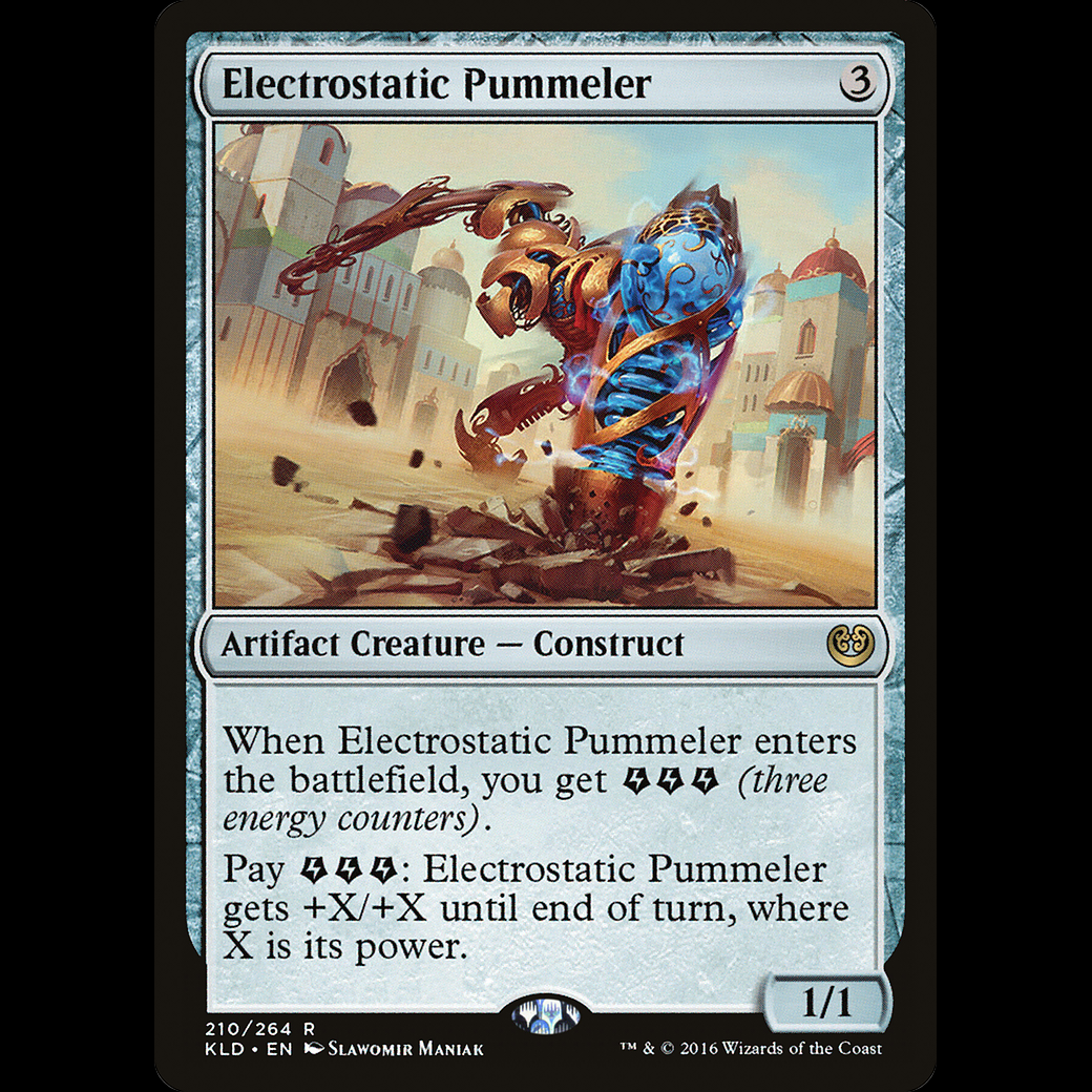 When Electrostatic Pummeler enters the battlefield, you get (three energy counters).