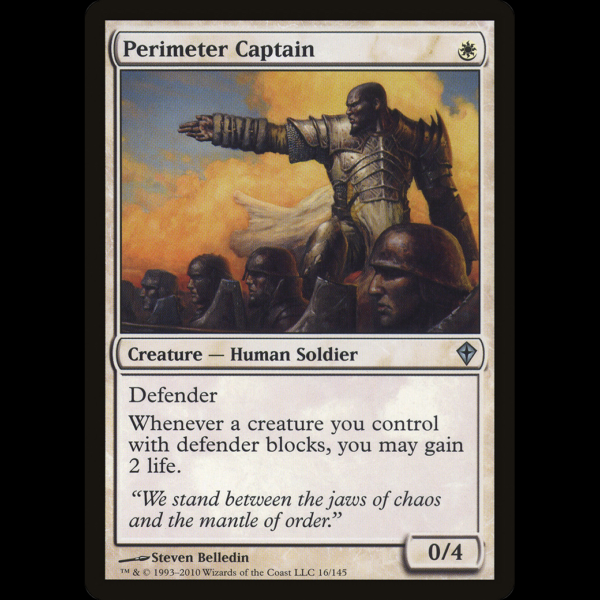 Whenever a creature you control with defender blocks, you may gain 2 life.