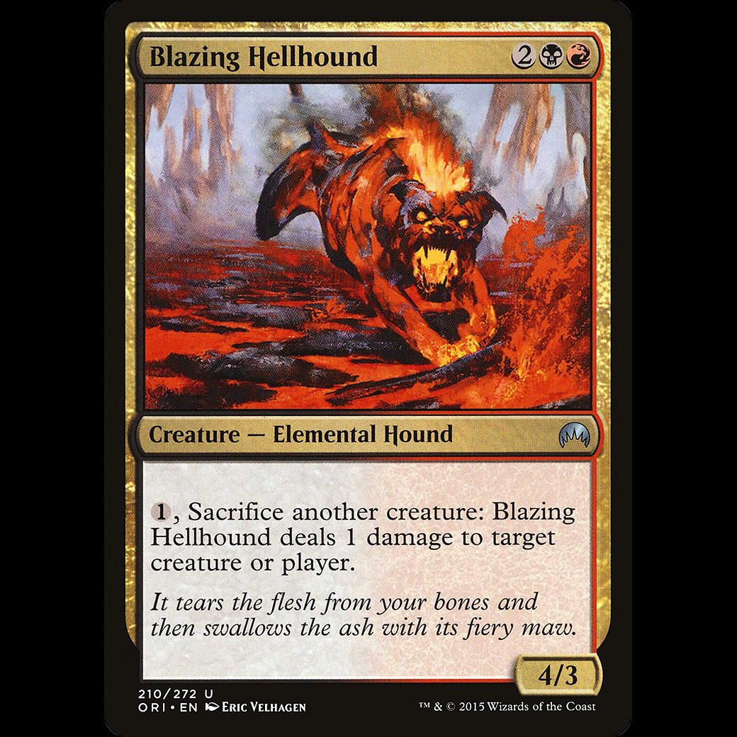 , Sacrifice another creature: Blazing Hellhound deals 1 damage to any target.