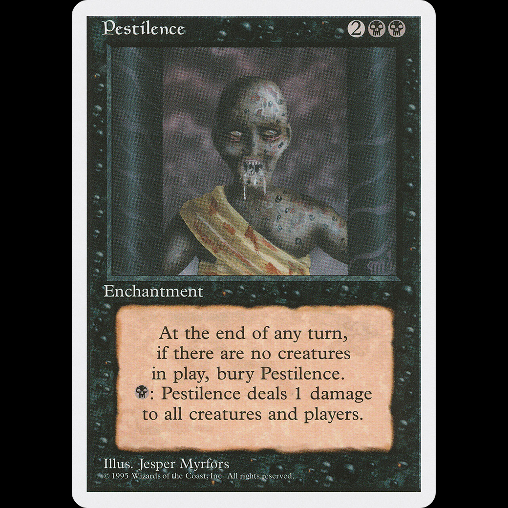 At the beginning of the end step, if no creatures are on the battlefield, sacrifice Pestilence.