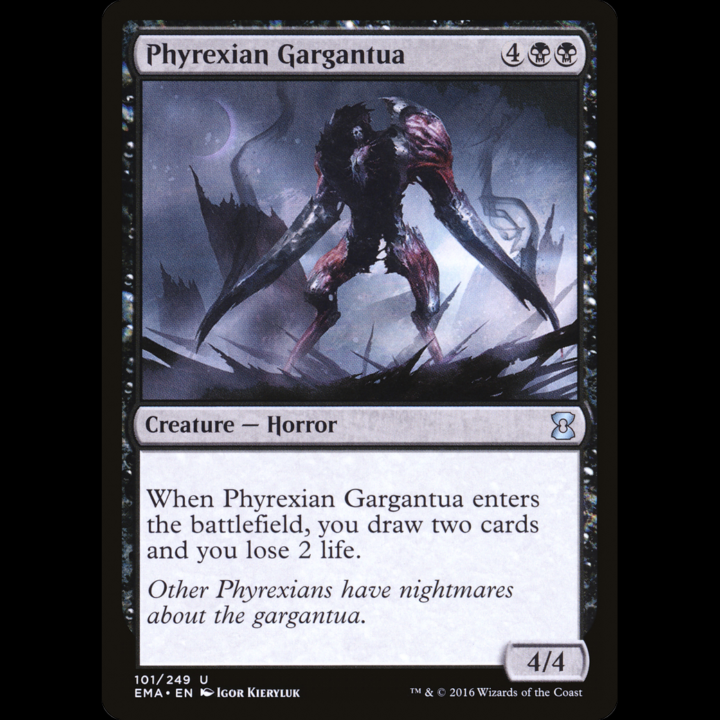 When Phyrexian Gargantua enters the battlefield, you draw two cards and you lose 2 life.
