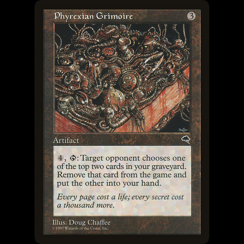 , : Target opponent chooses one of the top two cards of your graveyard. Exile that card and put the other one into your hand.