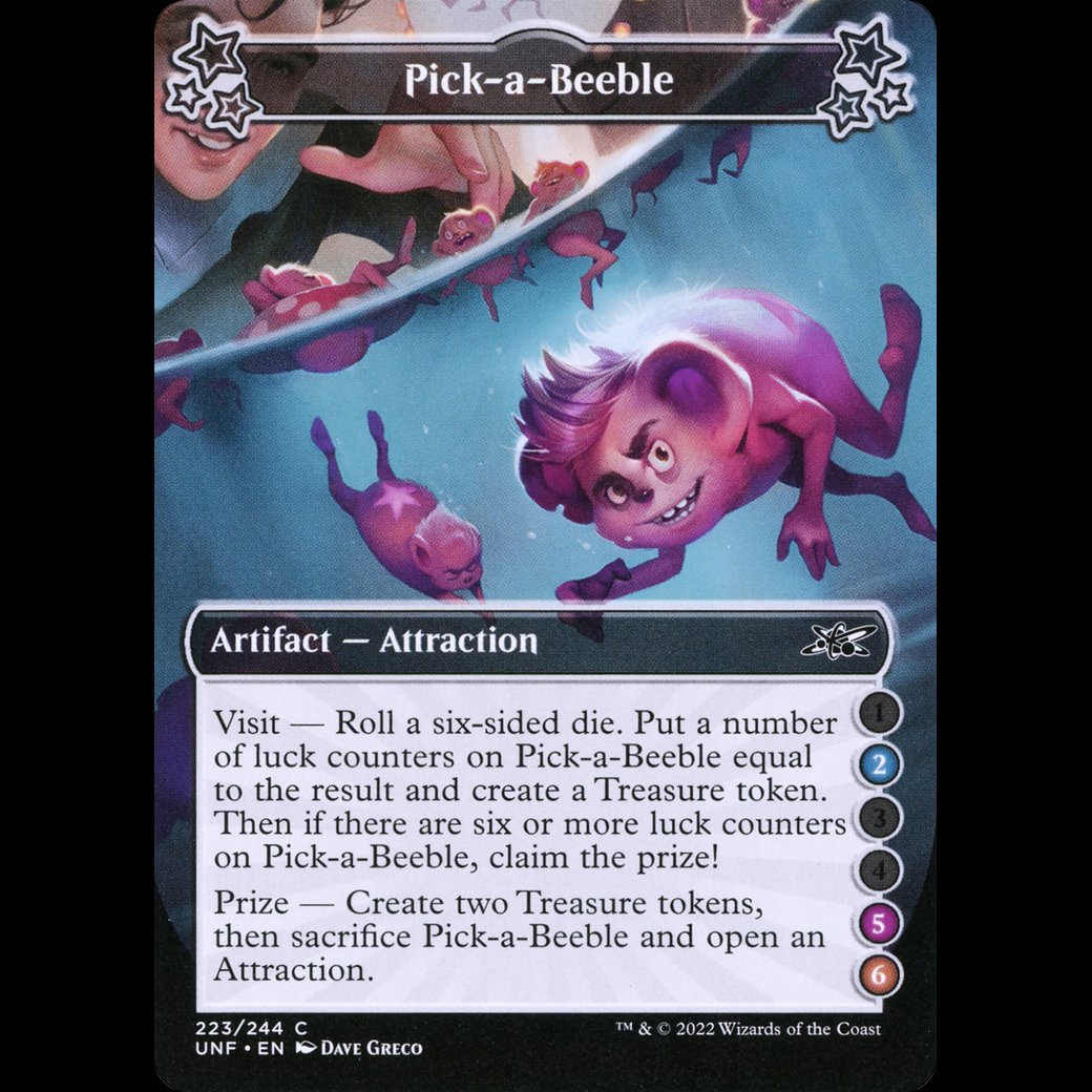 Prize — Create two Treasure tokens, then sacrifice Pick-a-Beeble and open an Attraction.