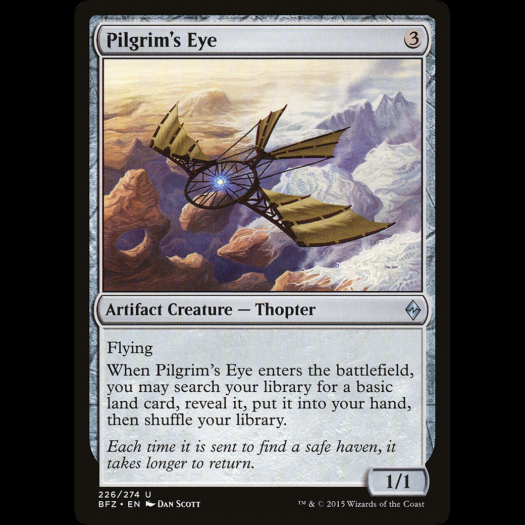 When Pilgrim's Eye enters the battlefield, you may search your library for a basic land card, reveal it, put it into your hand, then shuffle.