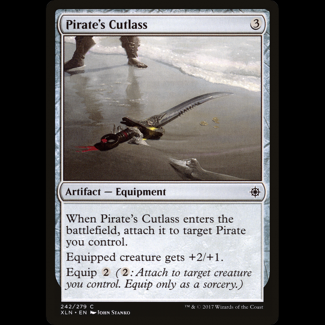 When Pirate's Cutlass enters the battlefield, attach it to target Pirate you control.
