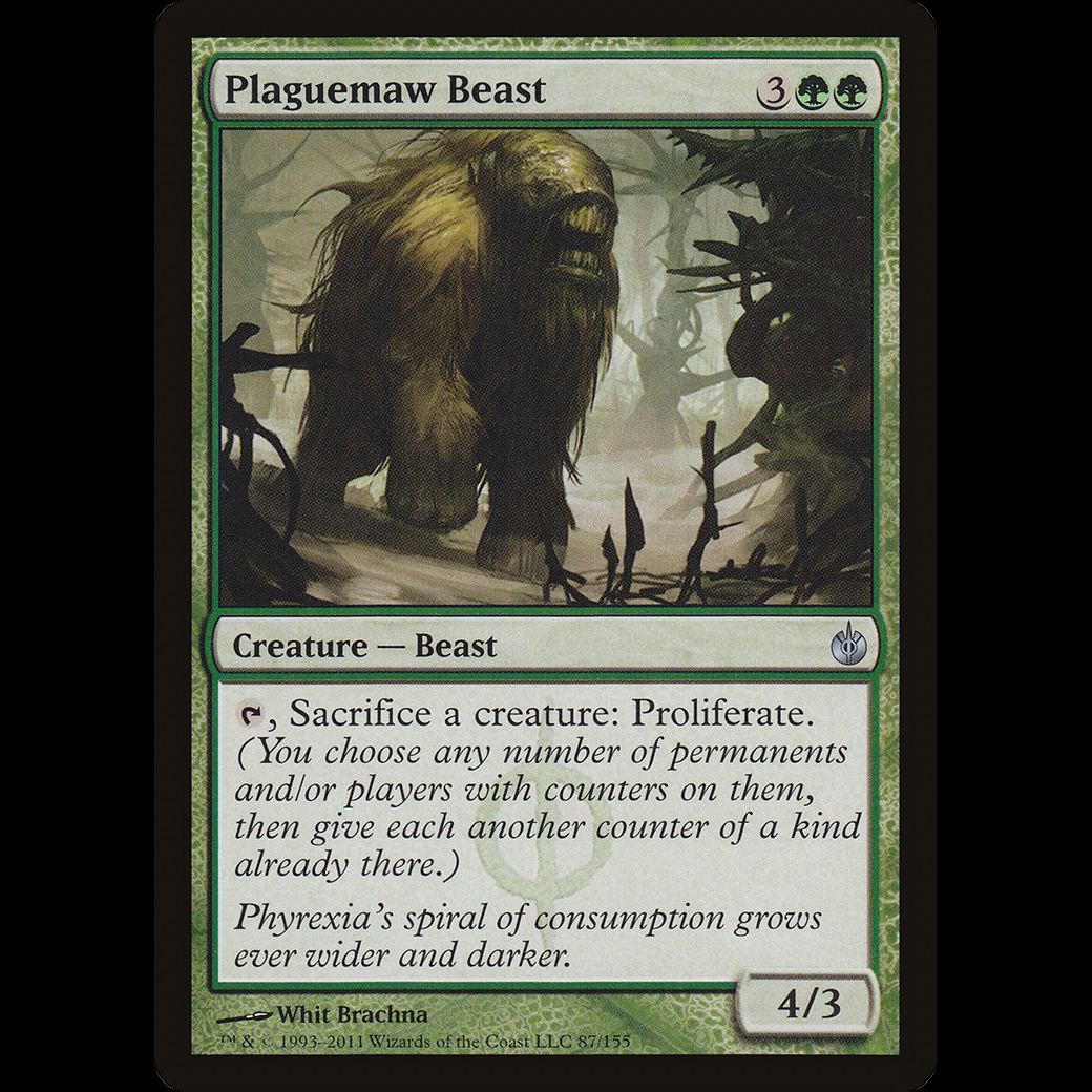 , Sacrifice a creature: Proliferate. (Choose any number of permanents and/or players, then give each another counter of each kind already there.)