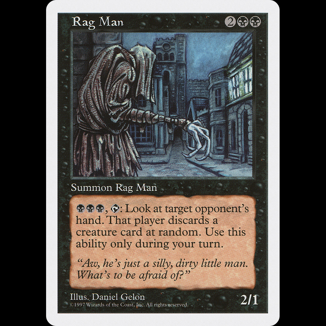 , : Target opponent reveals their hand and discards a creature card at random. Activate only during your turn.
