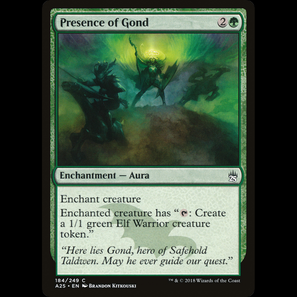 Enchanted creature has ": Create a 1/1 green Elf Warrior creature token."