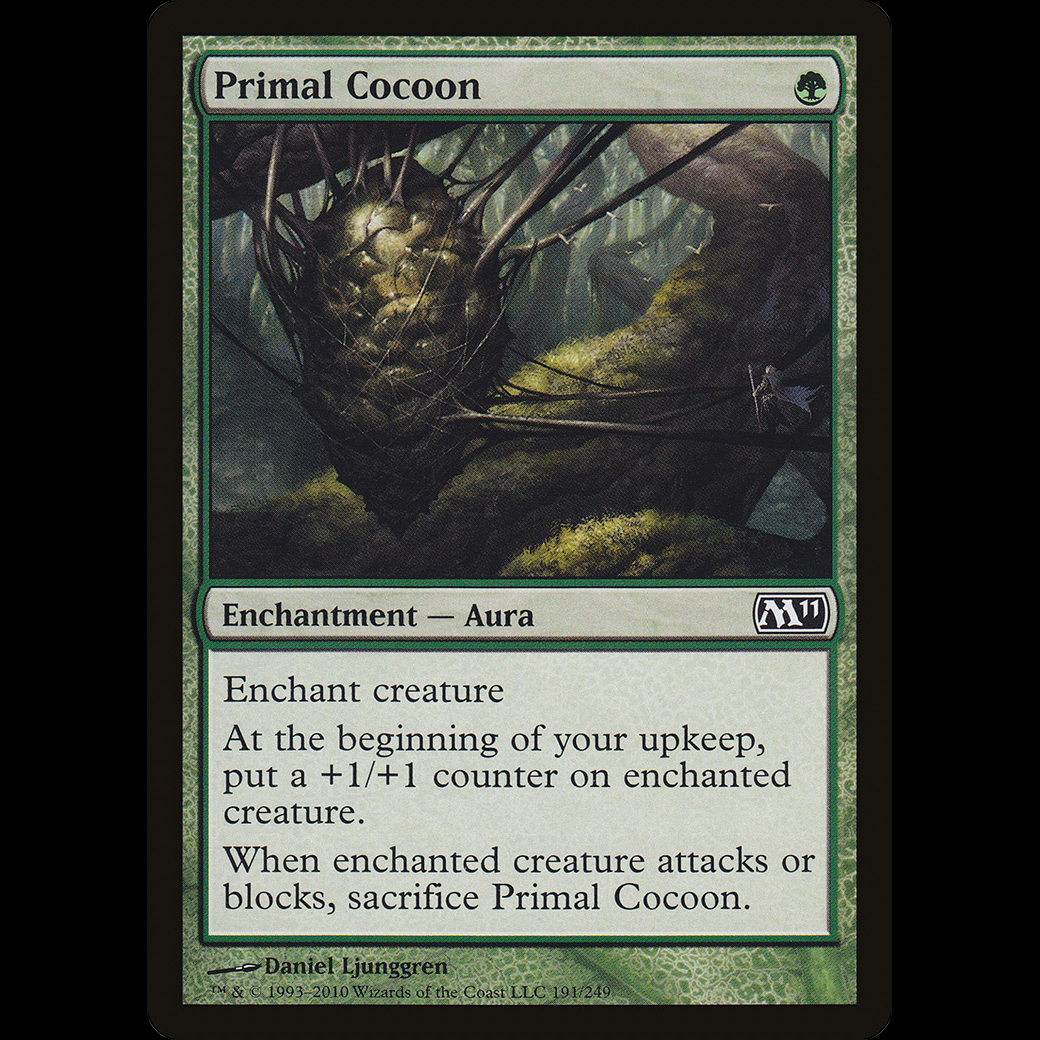 When enchanted creature attacks or blocks, sacrifice Primal Cocoon.