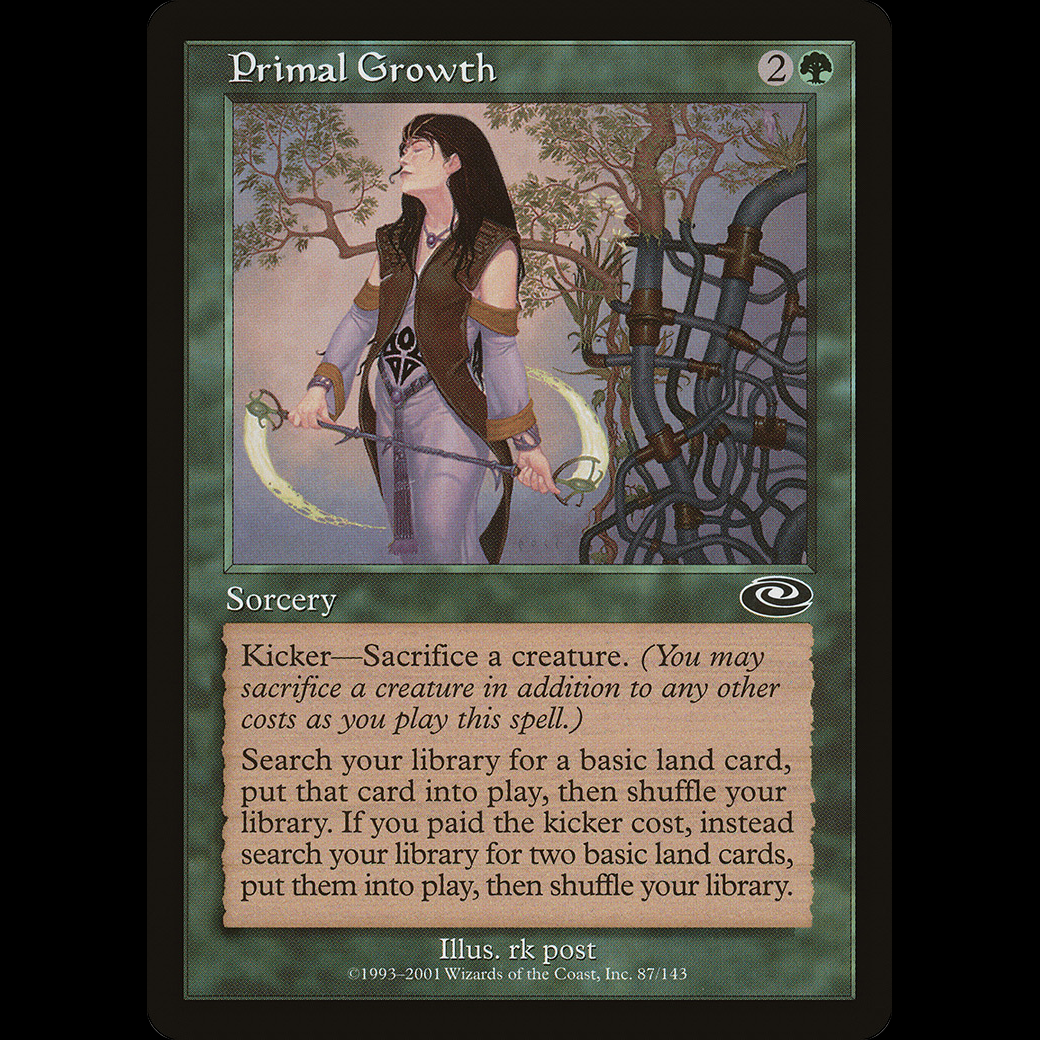 Search your library for a basic land card, put that card onto the battlefield, then shuffle. If this spell was kicked, instead search your library for up to two basic land cards, put them onto the battlefield, then shuffle.