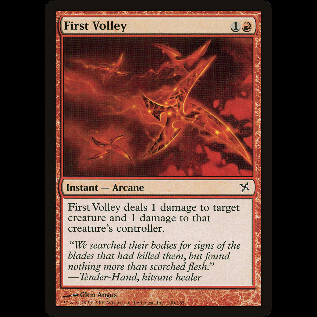 First Volley deals 1 damage to target creature and 1 damage to that creature's controller.