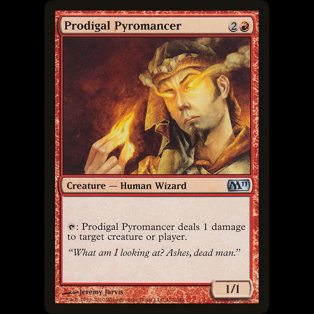 MTG Prodigal Pyromancer Magic 2011: Prodigal Pyromancer deals 1 damage to any target.
