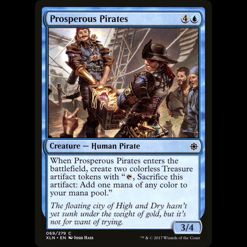 When Prosperous Pirates enters the battlefield, create two Treasure tokens. (They're artifacts with ", Sacrifice this artifact: Add one mana of any color.")