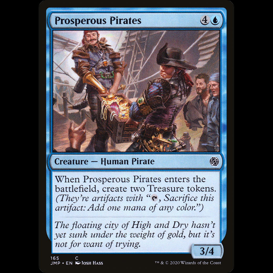 When this creature enters, create two Treasure tokens. (They're artifacts with ", Sacrifice this token: Add one mana of any color.")