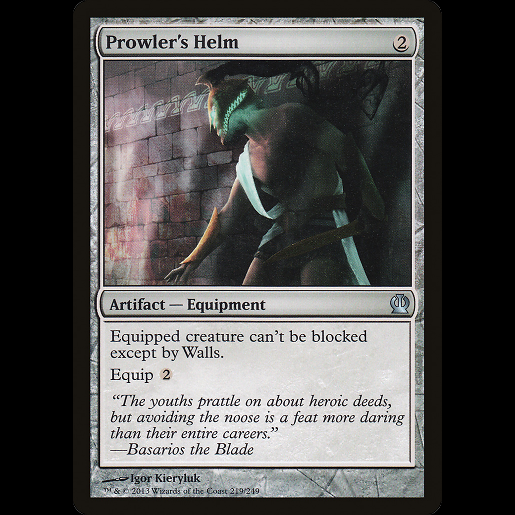 MTG Prowler's Helm TherosEquipped creature can't be blocked except by Walls. Equip