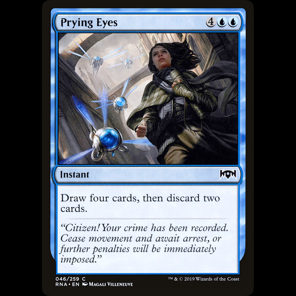 MTG Prying Eyes Ravnica Allegiance rna#46Draw four cards, then discard two cards.