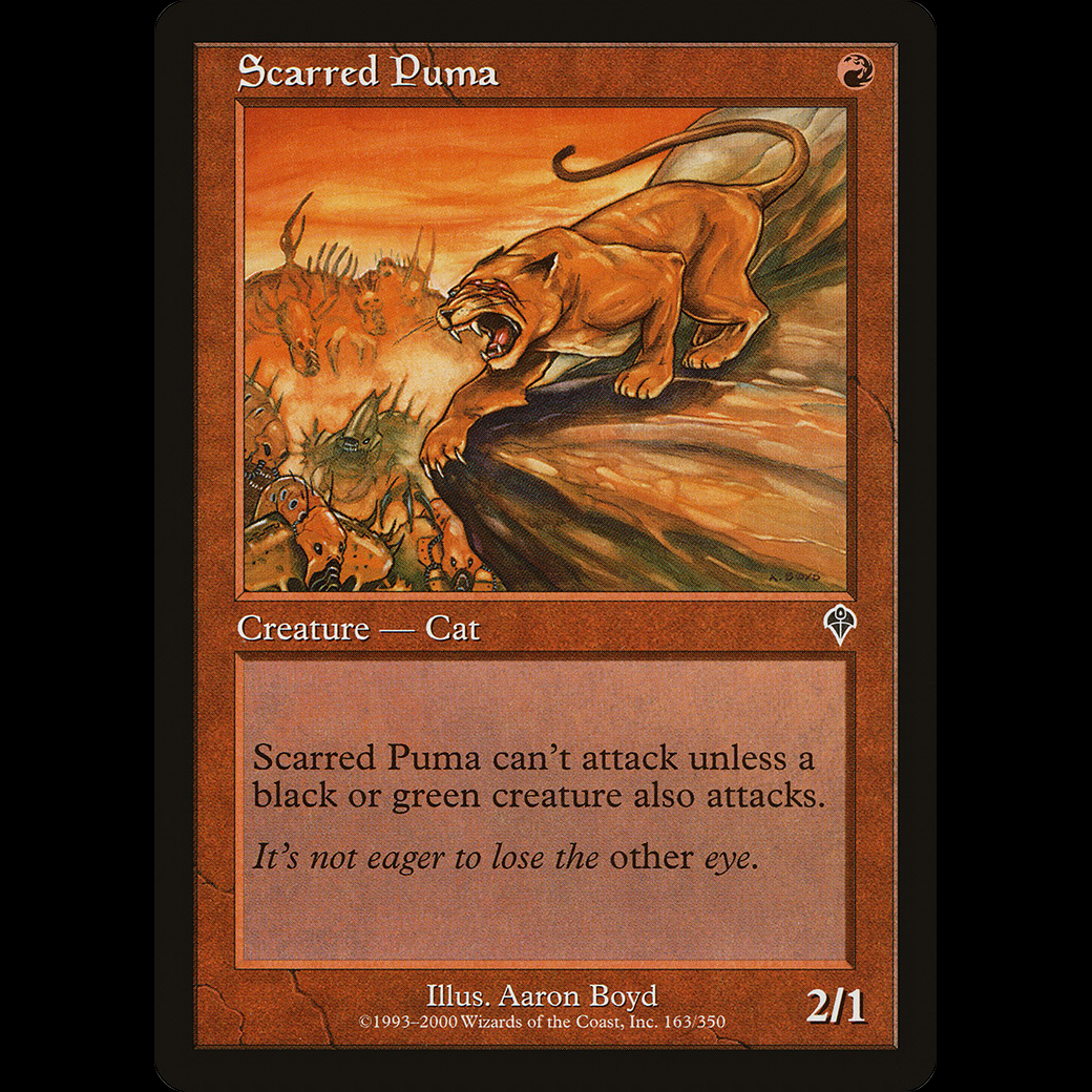 Scarred Puma can't attack unless a black or green creature also attacks.