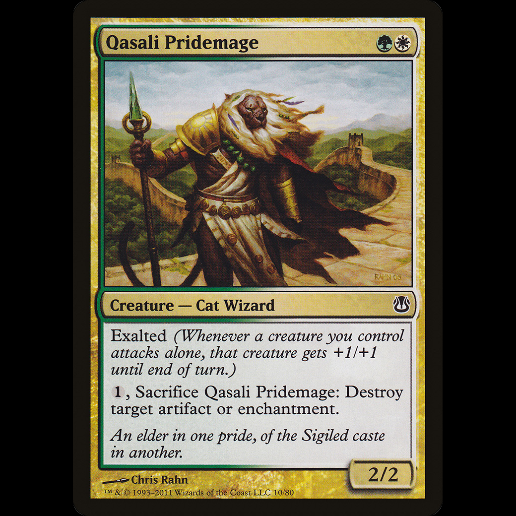 , Sacrifice Qasali Pridemage: Destroy target artifact or enchantment.