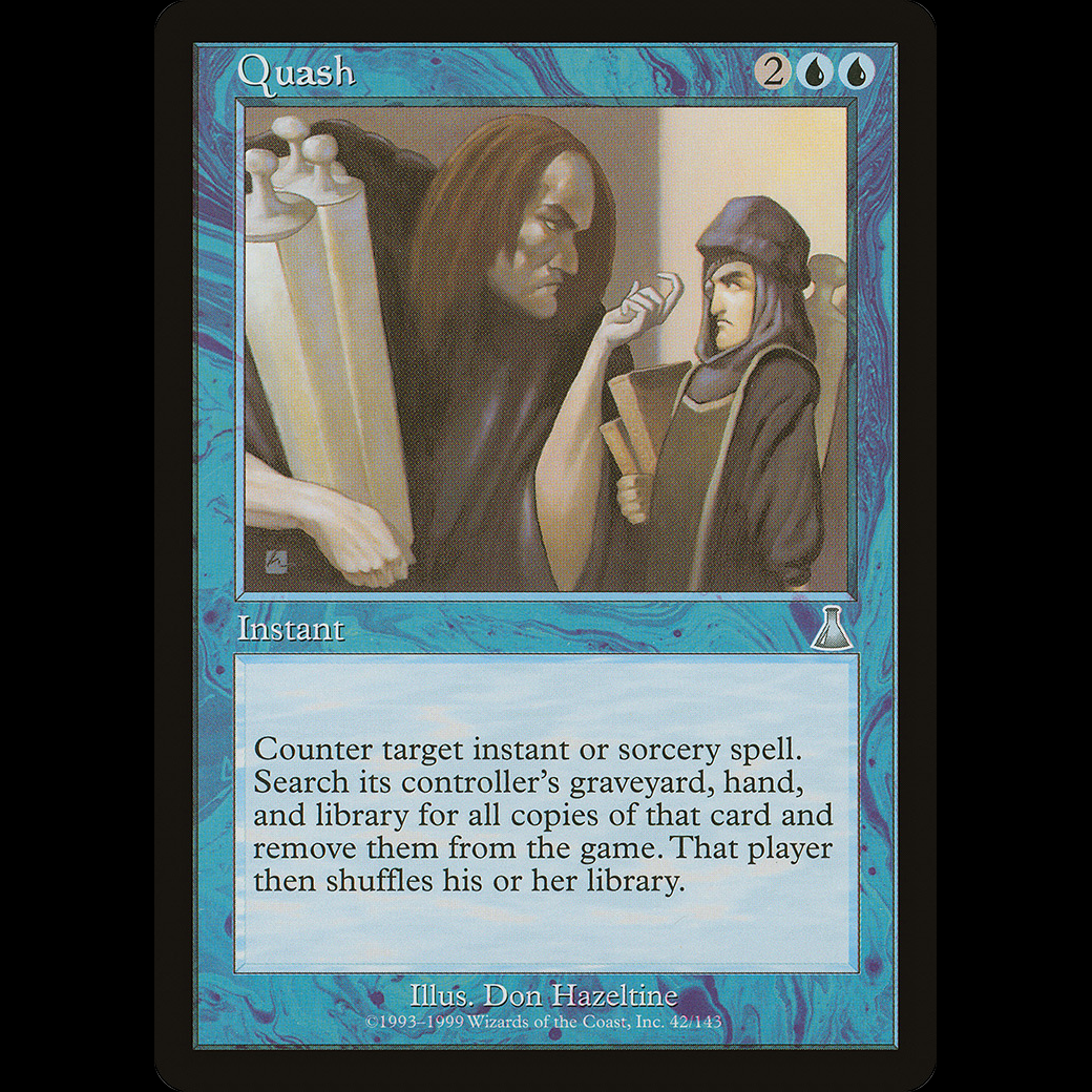 Counter target instant or sorcery spell. Search its controller's graveyard, hand, and library for all cards with the same name as that spell and exile them. Then that player shuffles.