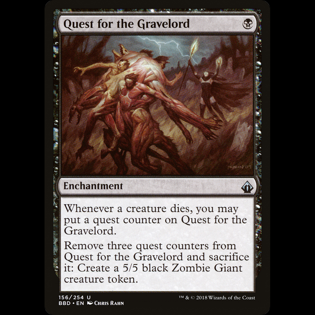Whenever a creature dies, you may put a quest counter on Quest for the Gravelord.