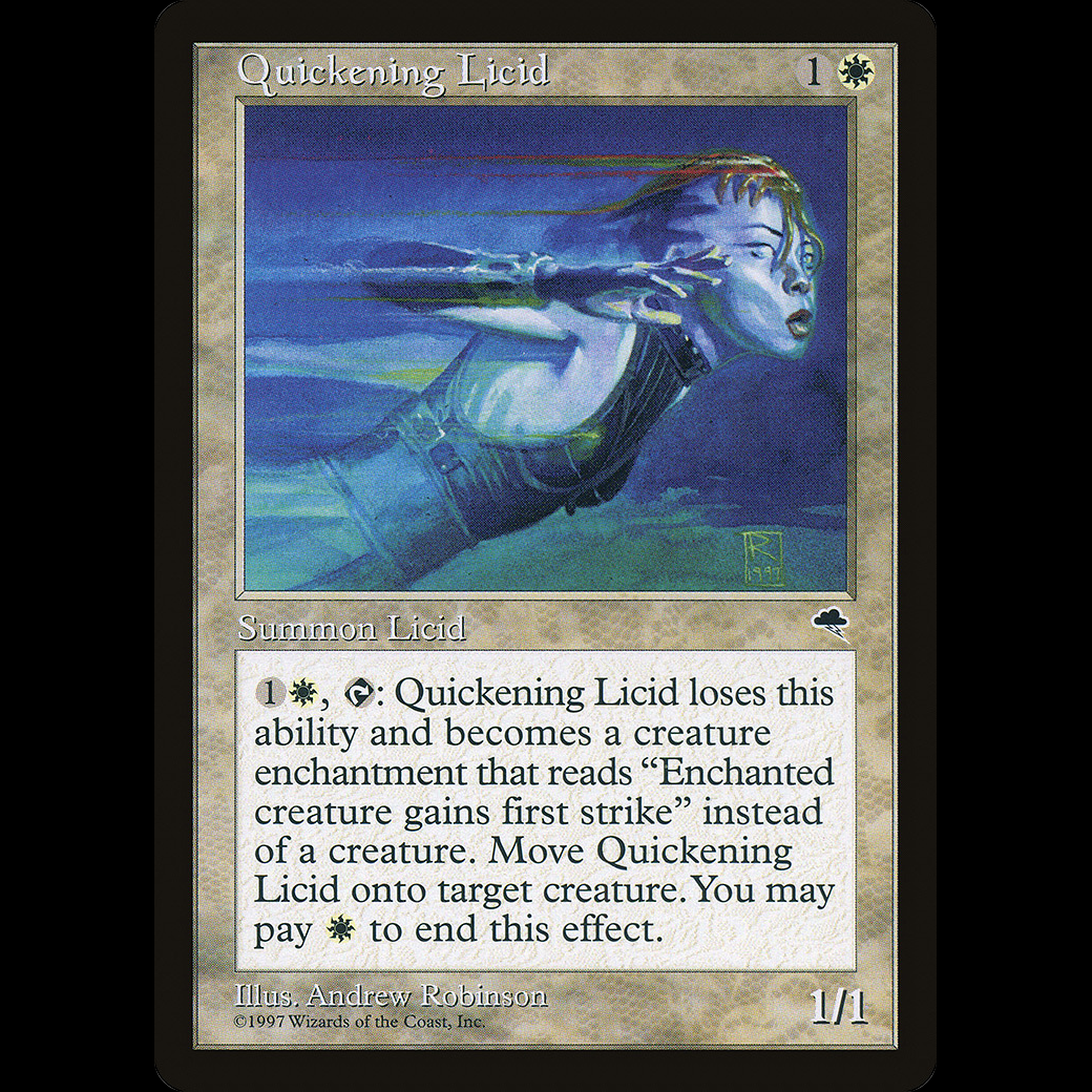 , : Quickening Licid loses this ability and becomes an Aura enchantment with enchant creature. Attach it to target creature. You may pay to end this effect.