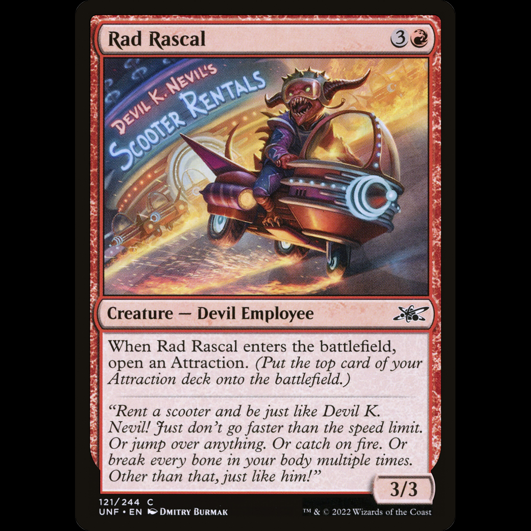 When this creature enters, open an Attraction. (Put the top card of your Attraction deck onto the battlefield.)