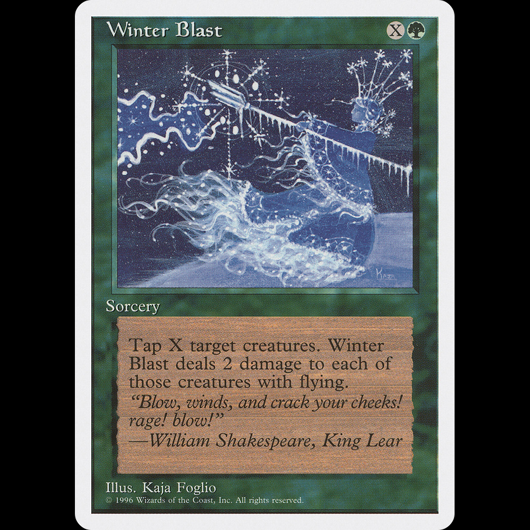 Tap X target creatures. Winter Blast deals 2 damage to each of those creatures with flying.