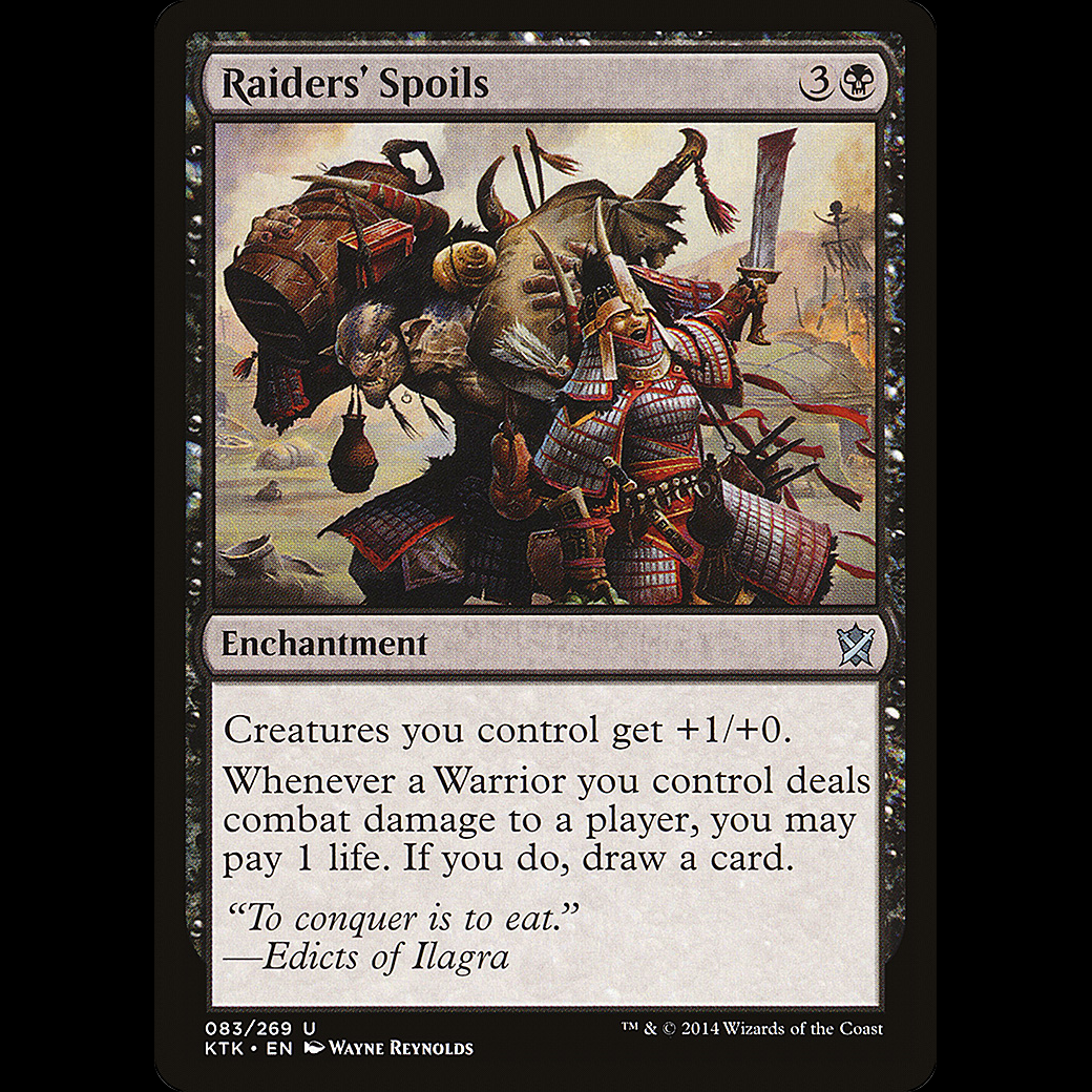 Whenever a Warrior you control deals combat damage to a player, you may pay 1 life. If you do, draw a card.