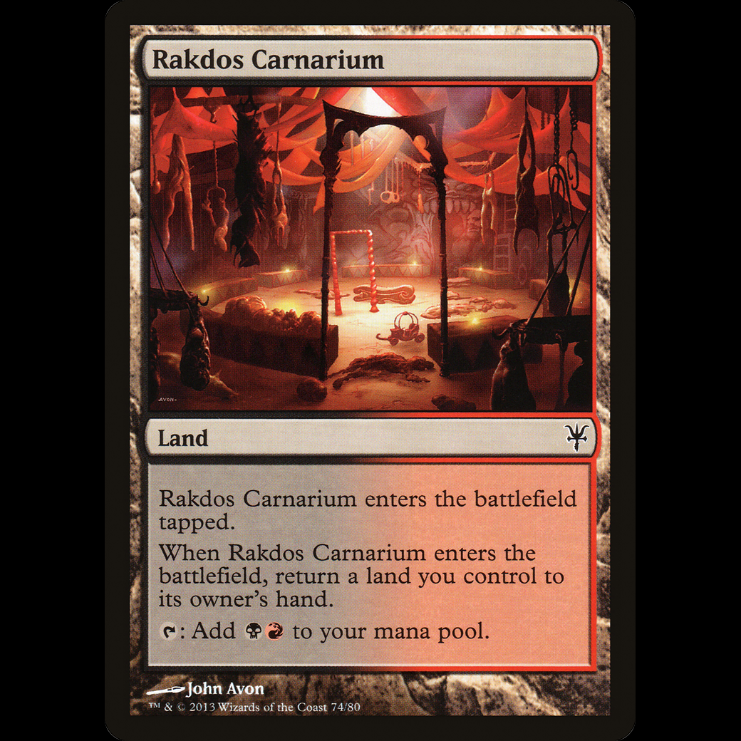 When Rakdos Carnarium enters the battlefield, return a land you control to its owner's hand.