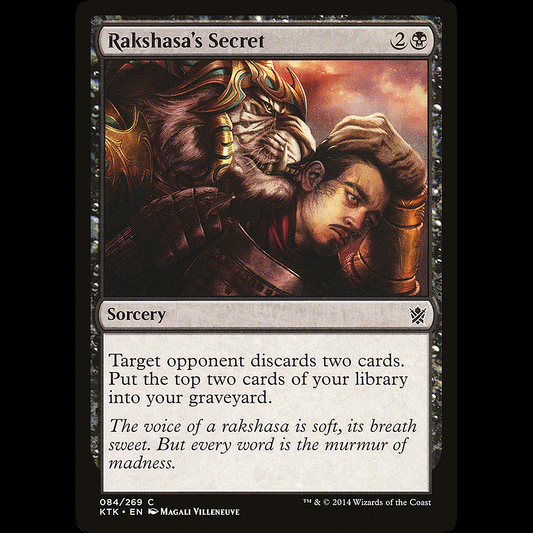MTG Rakshasa's Secret Khans of TarkirTarget opponent discards two cards. Mill two cards.