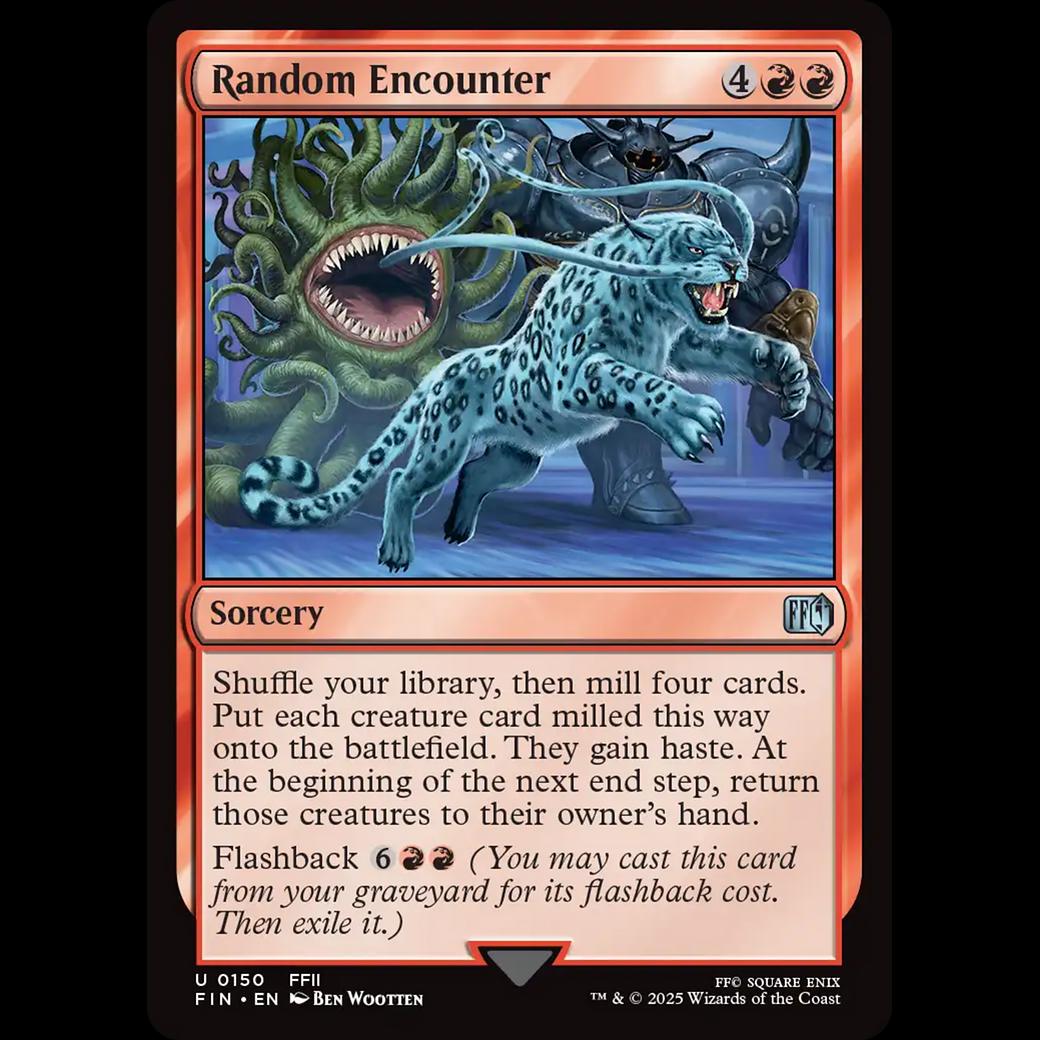 Shuffle your library, then mill four cards. Put each creature card milled this way onto the battlefield. They gain haste. At the beginning of the next end step, return those creatures to their owner's hand.