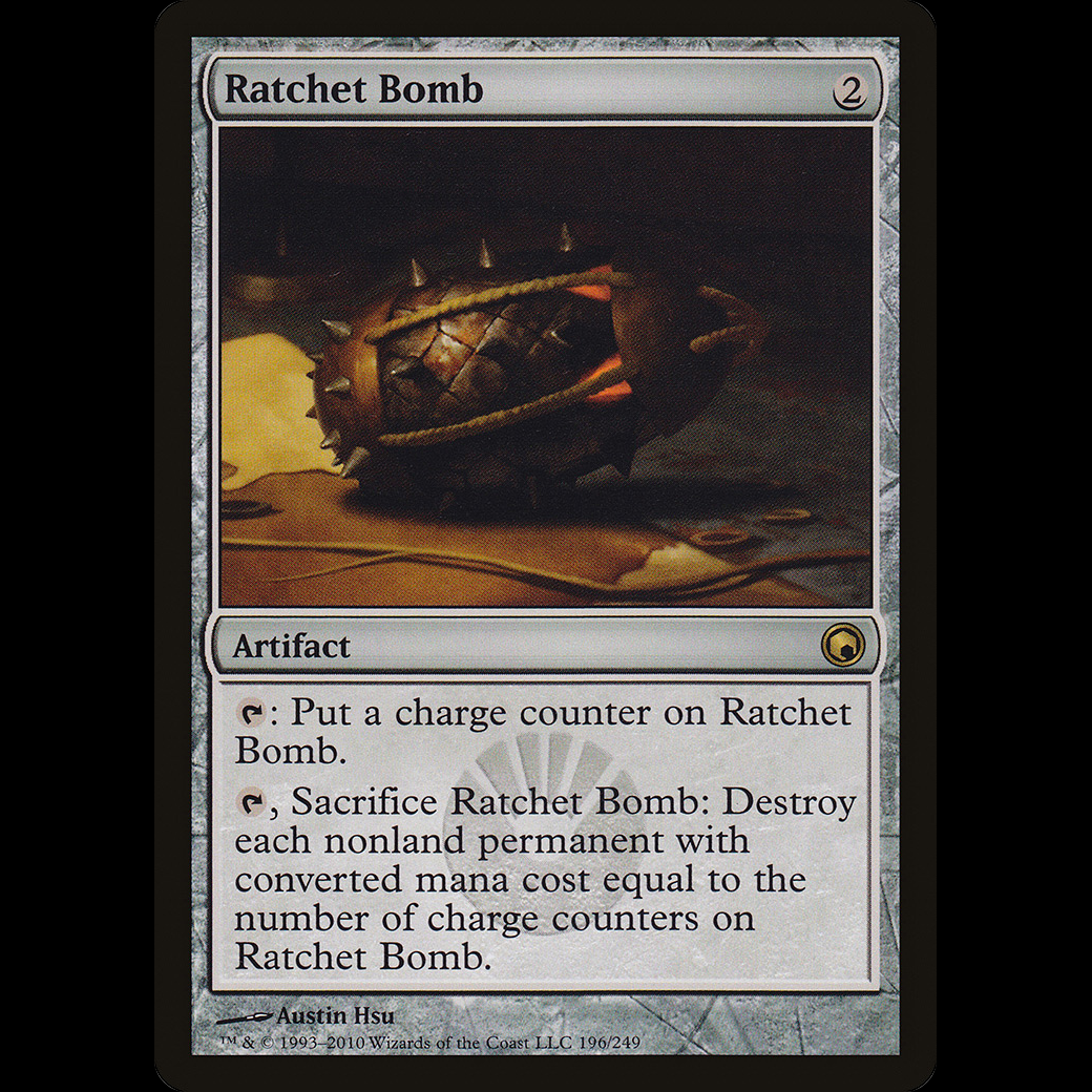 , Sacrifice Ratchet Bomb: Destroy each nonland permanent with mana value equal to the number of charge counters on Ratchet Bomb.