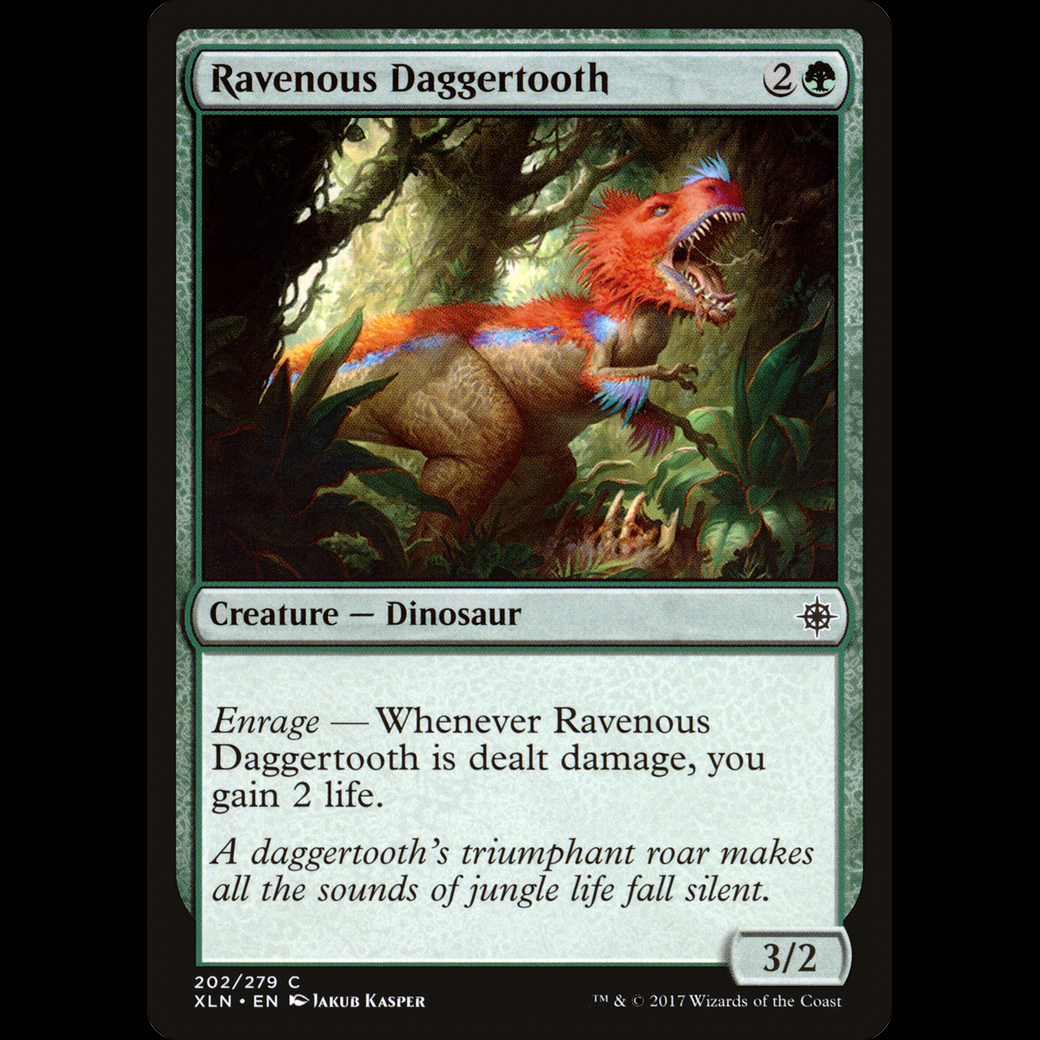 Enrage — Whenever Ravenous Daggertooth is dealt damage, you gain 2 life.