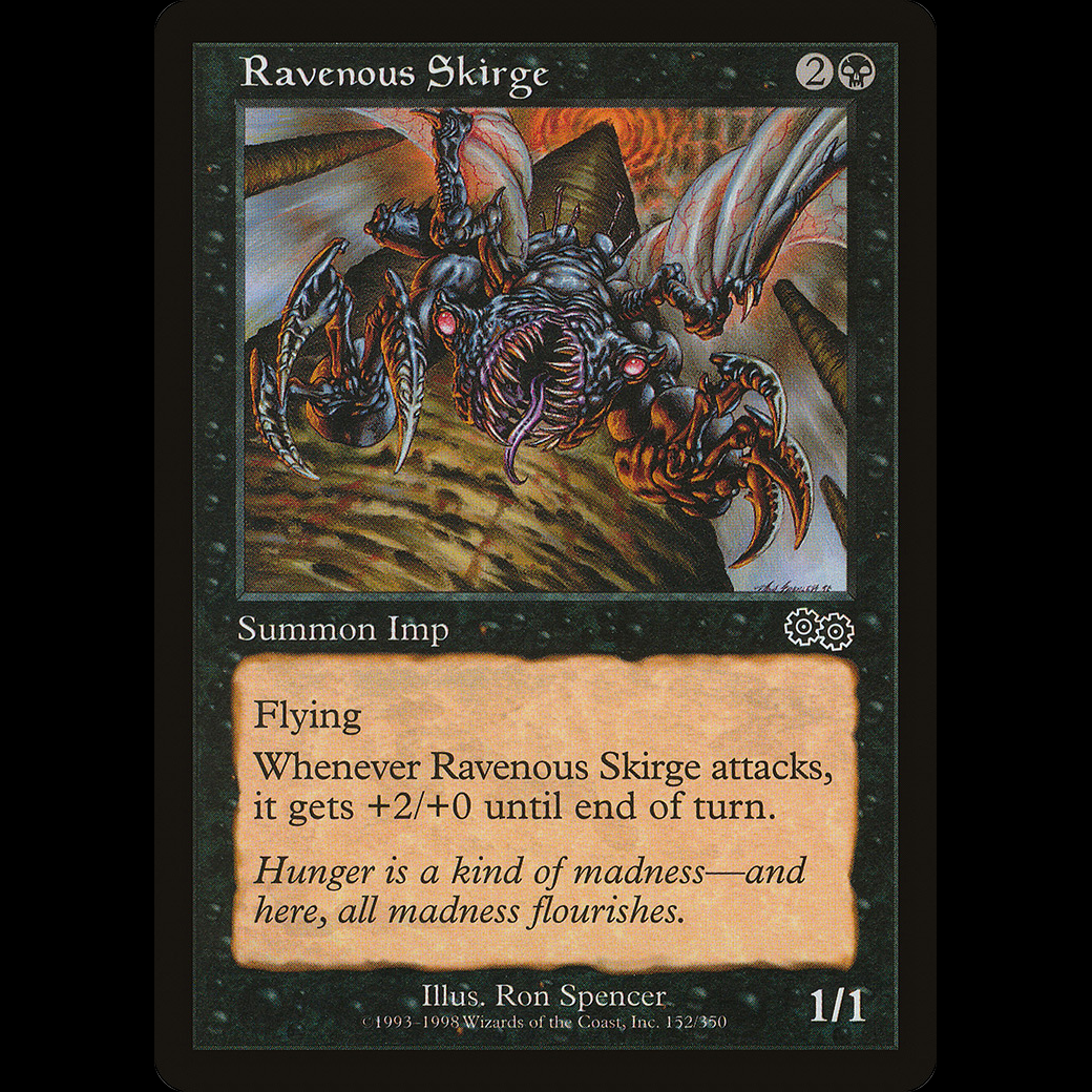 Whenever Ravenous Skirge attacks, it gets +2/+0 until end of turn.
