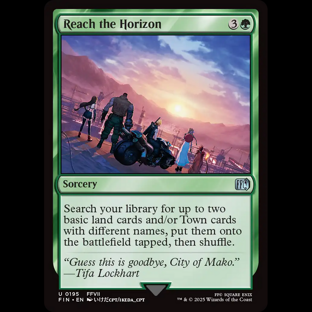 Search your library for up to two basic land cards and/or Town cards with different names, put them onto the battlefield tapped, then shuffle.