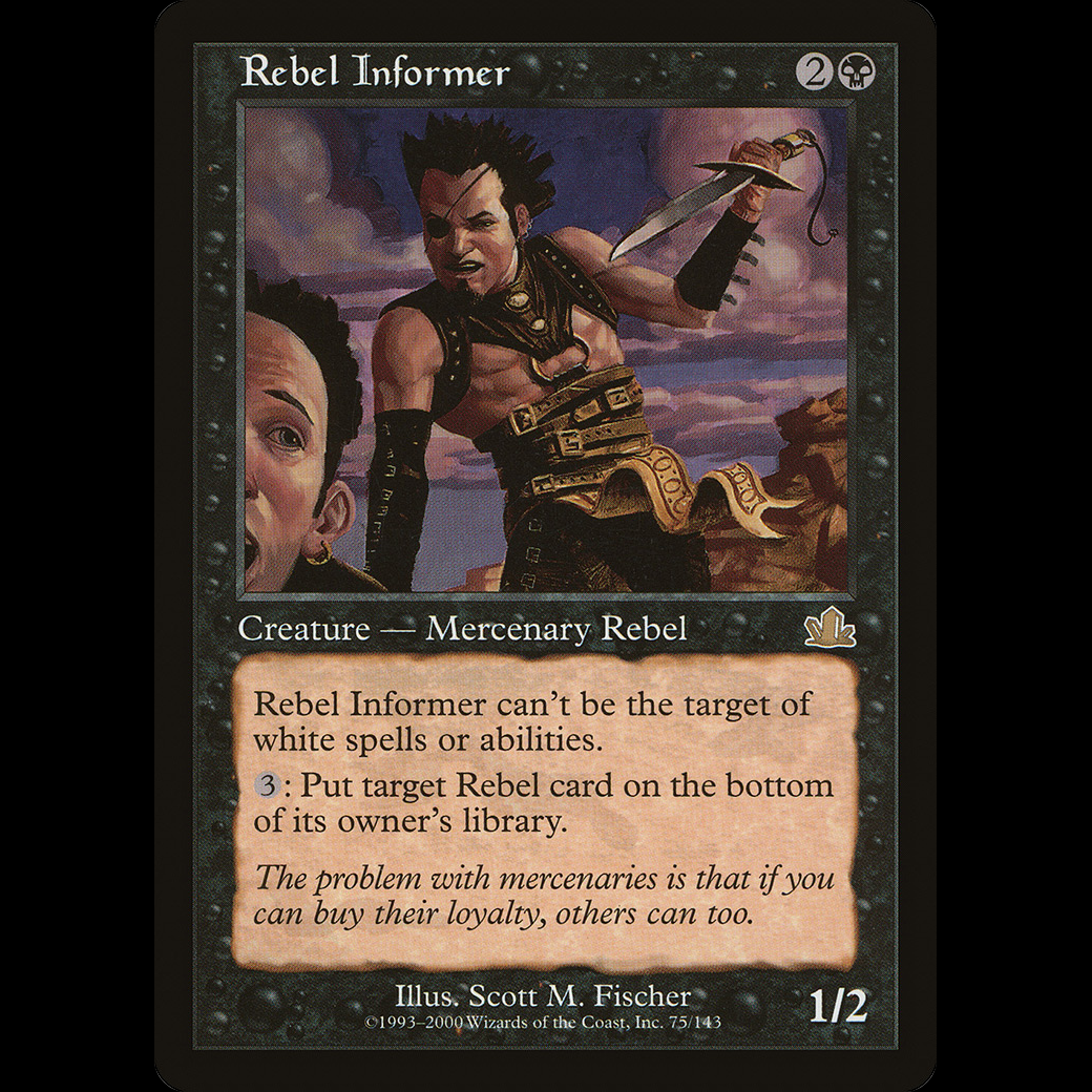 Rebel Informer can't be the target of white spells or abilities from white sources.