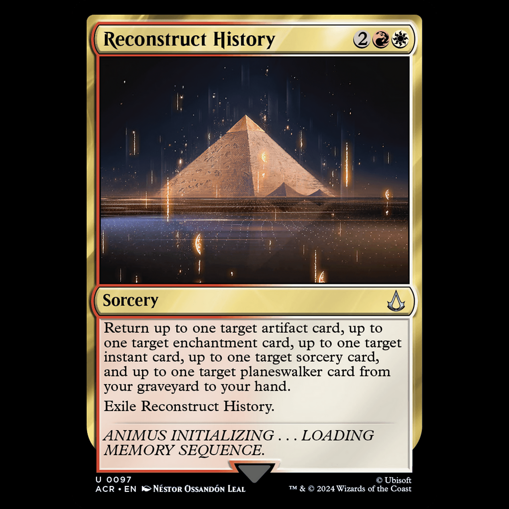 Return up to one target artifact card, up to one target enchantment card, up to one target instant card, up to one target sorcery card, and up to one target planeswalker card from your graveyard to your hand.