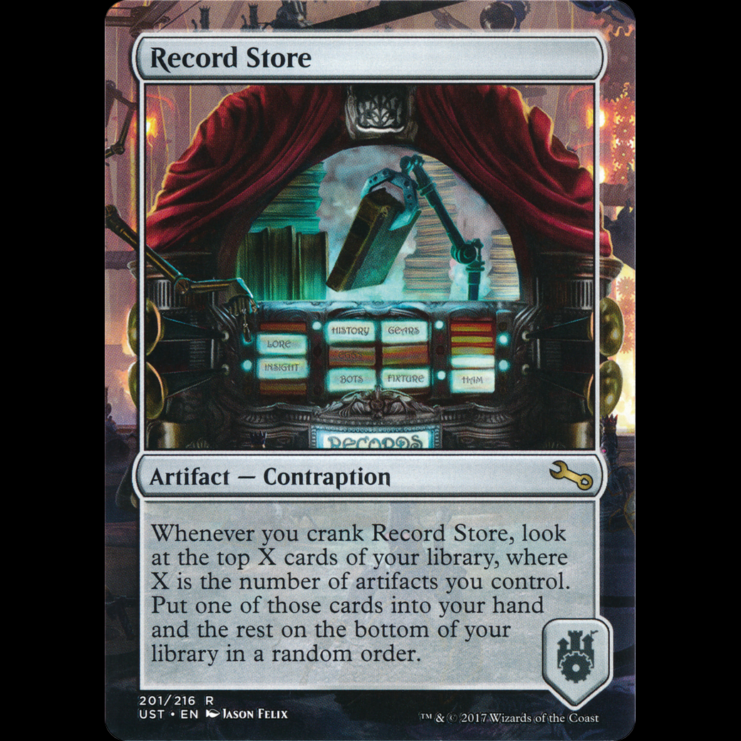 Whenever you crank this Contraption, look at the top X cards of your library, where X is the number of artifacts you control. Put one of those cards into your hand and the rest on the bottom of your library in a random order.
