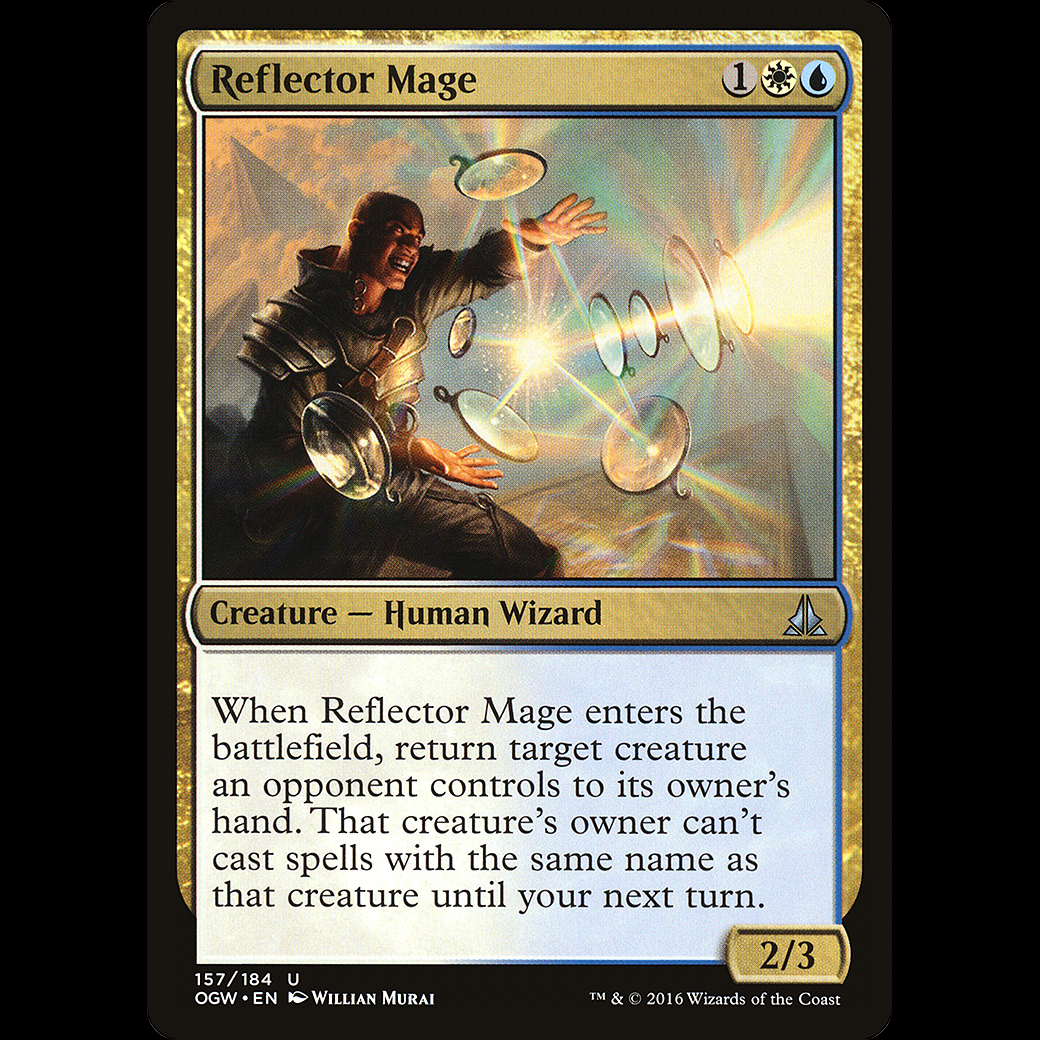 When Reflector Mage enters the battlefield, return target creature an opponent controls to its owner's hand. That creature's owner can't cast spells with the same name as that creature until your next turn.