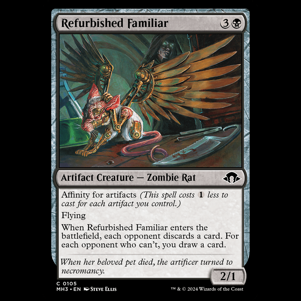 When Refurbished Familiar enters the battlefield, each opponent discards a card. For each opponent who can't, you draw a card.
