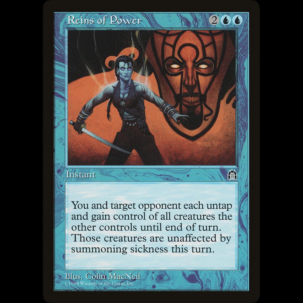 Untap all creatures you control and all creatures target opponent controls. You and that opponent each gain control of all creatures the other controls until end of turn. Those creatures gain haste until end of turn.