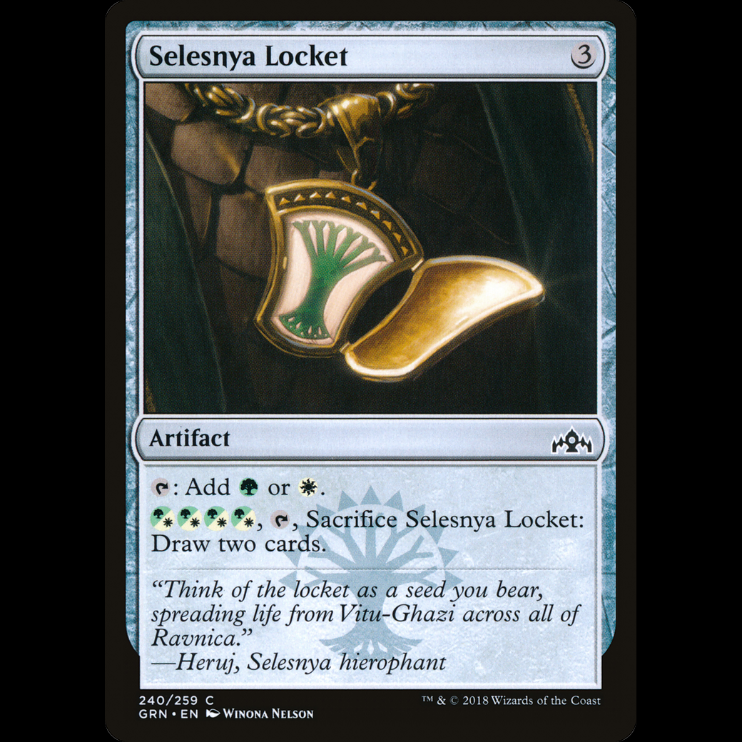 G/WG/WG/WG/W, , Sacrifice Selesnya Locket: Draw two cards.