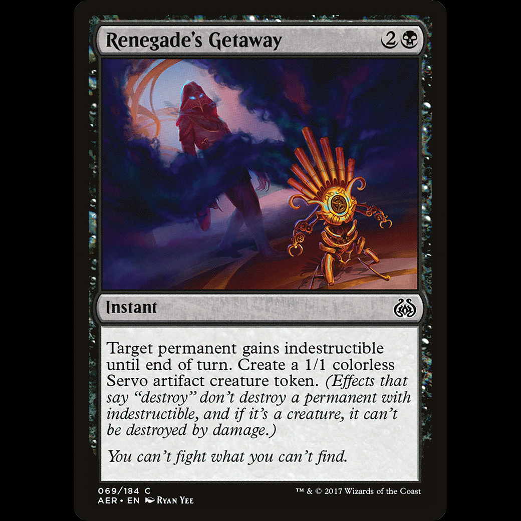 Target permanent gains indestructible until end of turn. Create a 1/1 colorless Servo artifact creature token. (Effects that say "destroy" don't destroy a permanent with indestructible, and if it's a creature, it can't be destroyed by damage.)