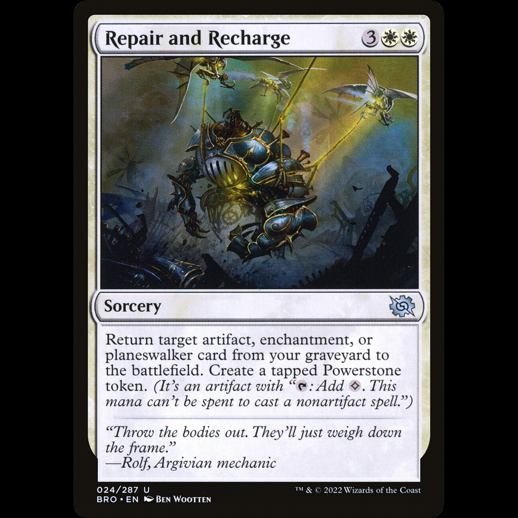 Return target artifact, enchantment, or planeswalker card from your graveyard to the battlefield. Create a tapped Powerstone token. (It's an artifact with ": Add . This mana can't be spent to cast a nonartifact spell.")