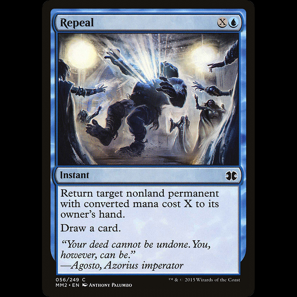 MTG Repeal Modern Masters 2015 Return target nonland permanent with mana value X to its owner's hand. Draw a card.