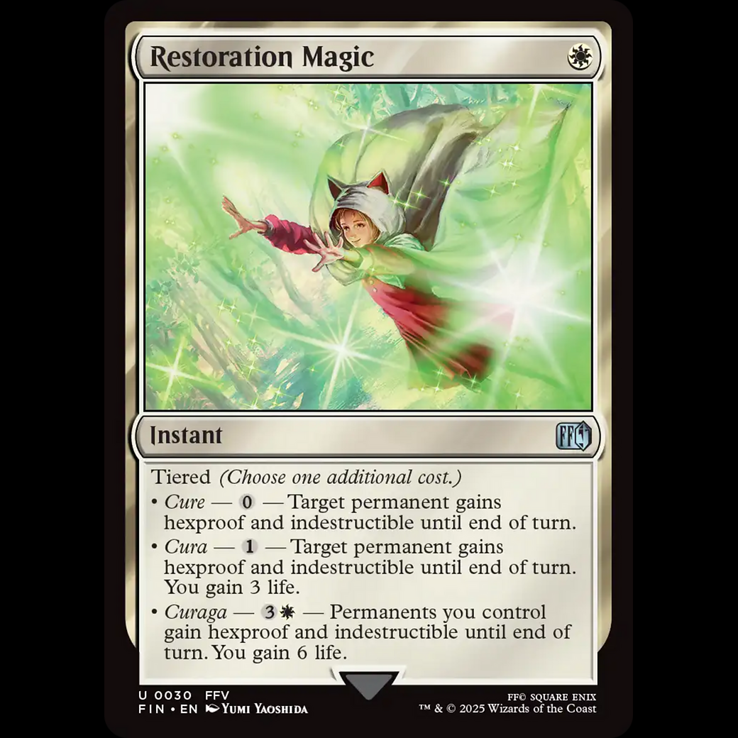 • Cura — — Target permanent gains hexproof and indestructible until end of turn. You gain 3 life.
